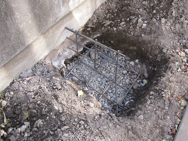 傾いた塀の補強工事