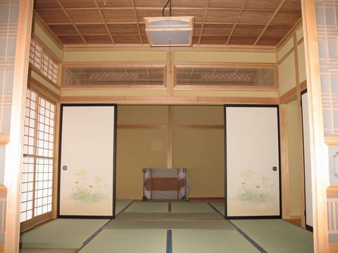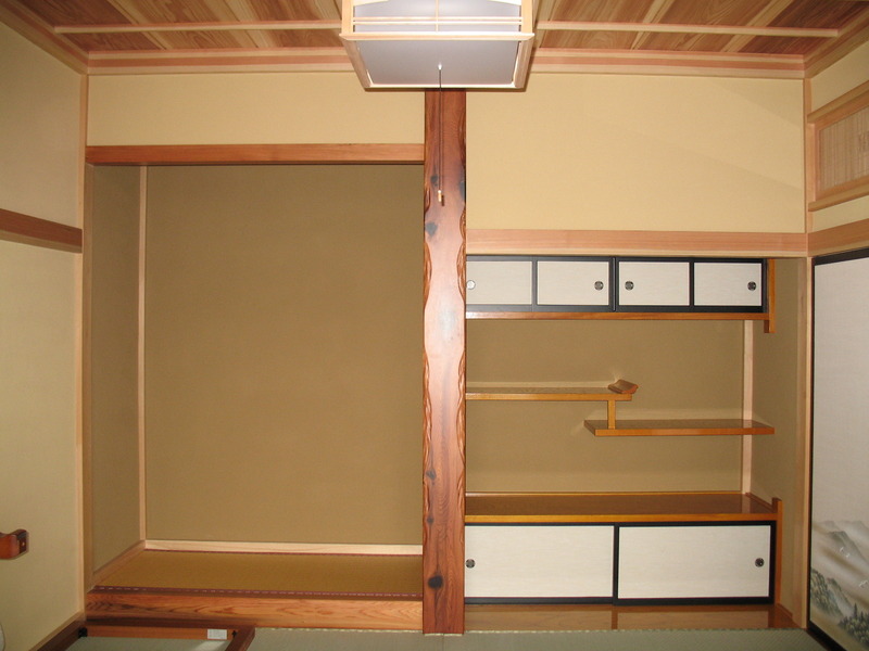 和室には、床の間と違い棚を設けました。